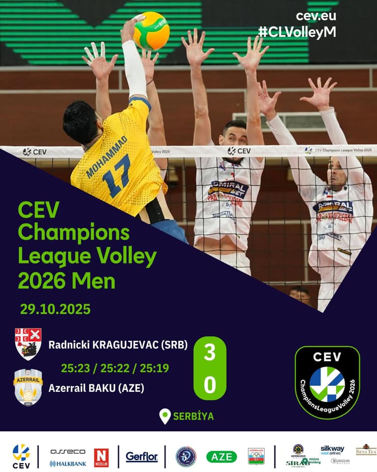 Çempionlar liqasında mübarizə aparan kişi voleybolçulardan ibarət “Azərreyl” klubu ötən gün Serbiyada “Radniçki” klubunun qonağı olub.