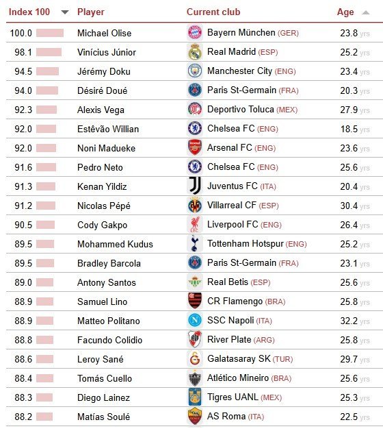 “Real Madrid”in futbolçusu Vinisius Junior ikinci, “Mançester Siti”nin üzvü Ceremi Doku isə üçüncüdür.
