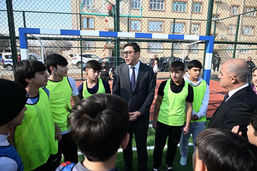 Hər üç şəhərdəki idman zonalarında minifutbol və basketbol meydançaları, stolüstü tennis, şahmat və trenajor avadanlıqları quraşdırılıb. Nazir Fərid Qayıbov idman qurğularında məşq edən uşaqlarla söhbət edib.
